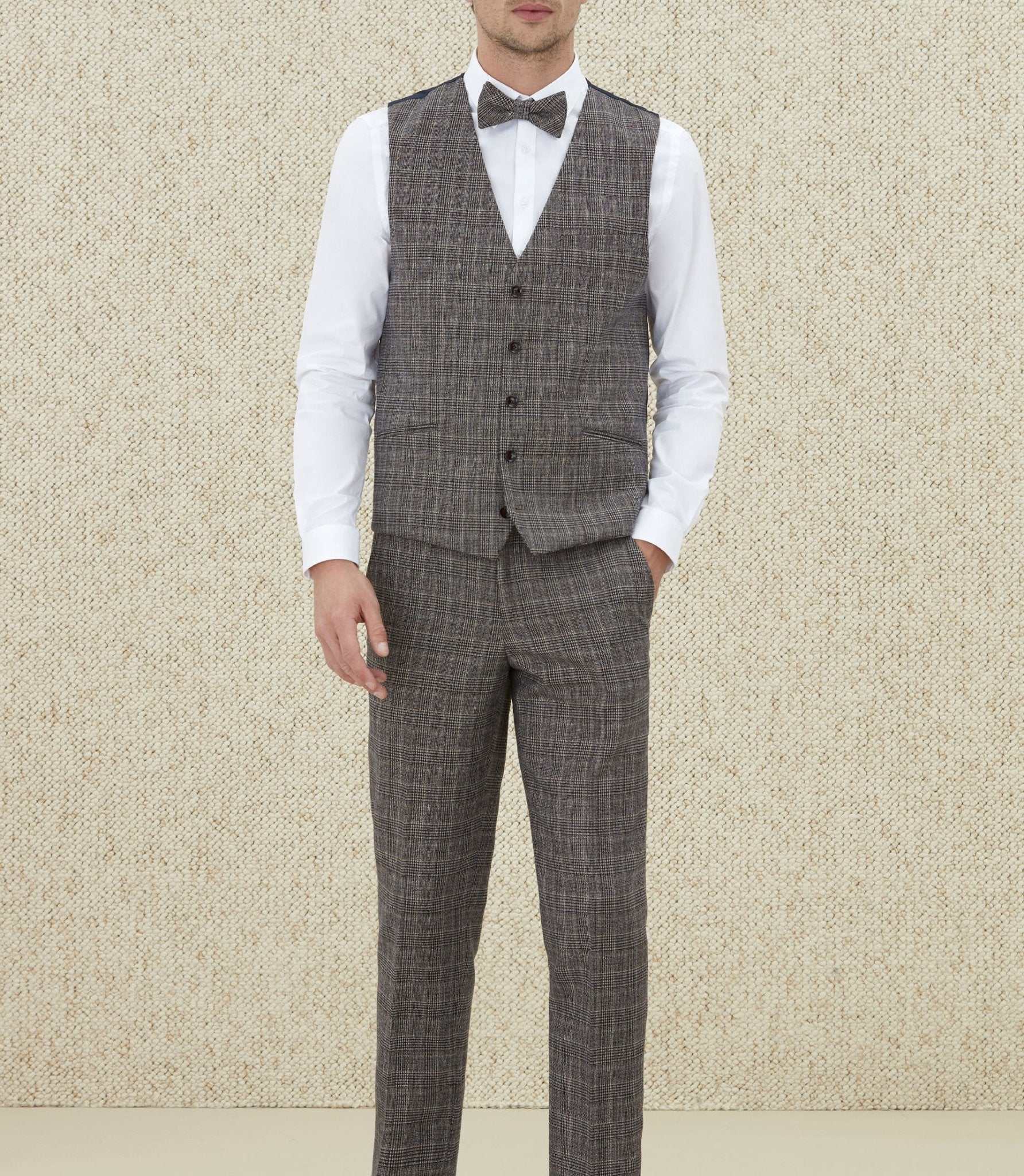 Gilet de costume Prince de Galles beige "Quempreinte"